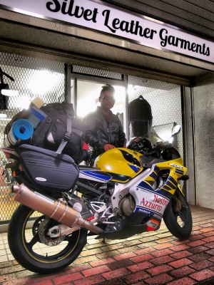 バイクの音がしたのでシャッター開けると福島のムトーさん。